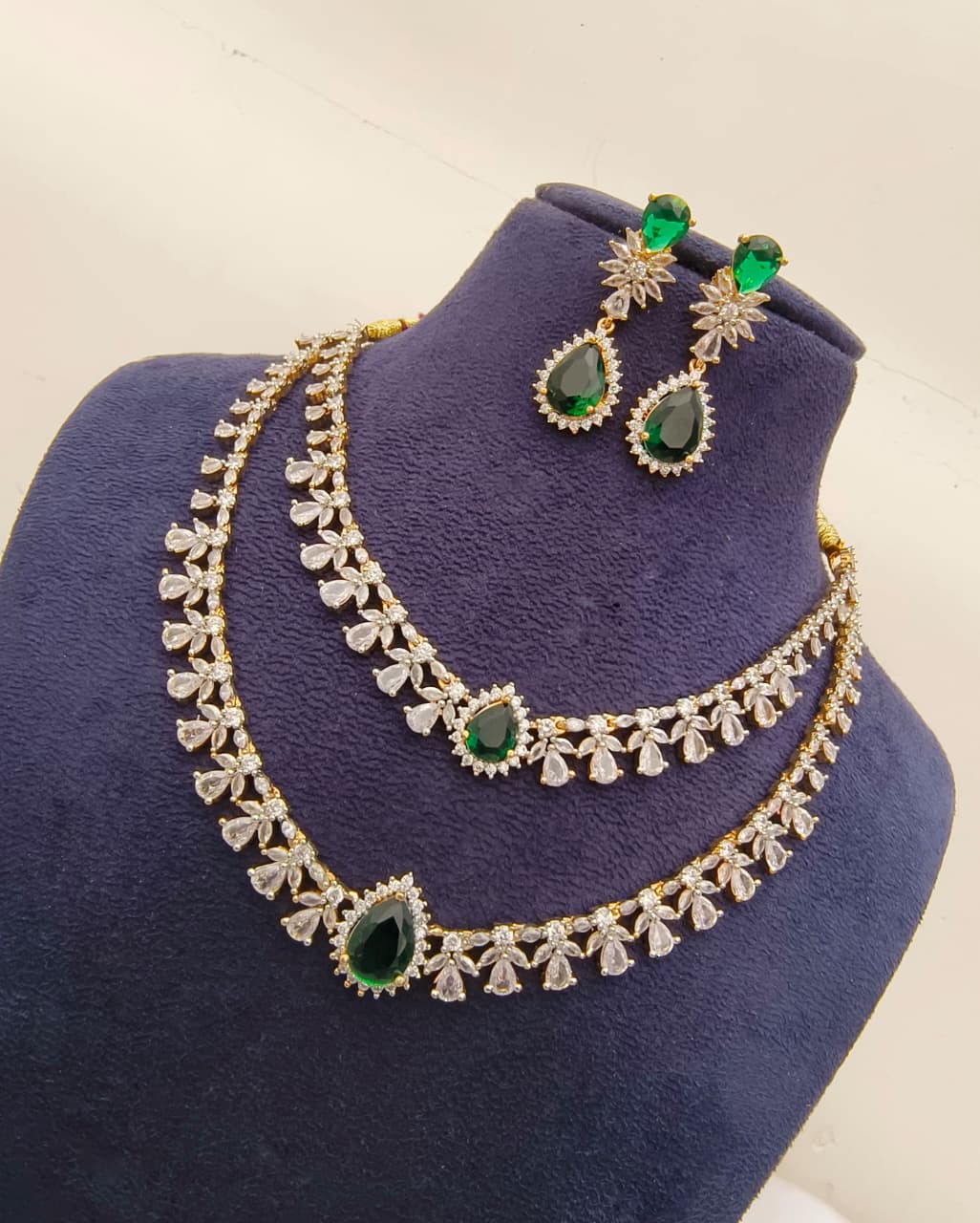 Elegant AD necklace set with sparkling stones and teardrop centerpiece. Perfect for weddings, parties, and bridal wear.